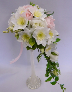 ユーチャリス&ピンクバラのキャスケードブーケ |