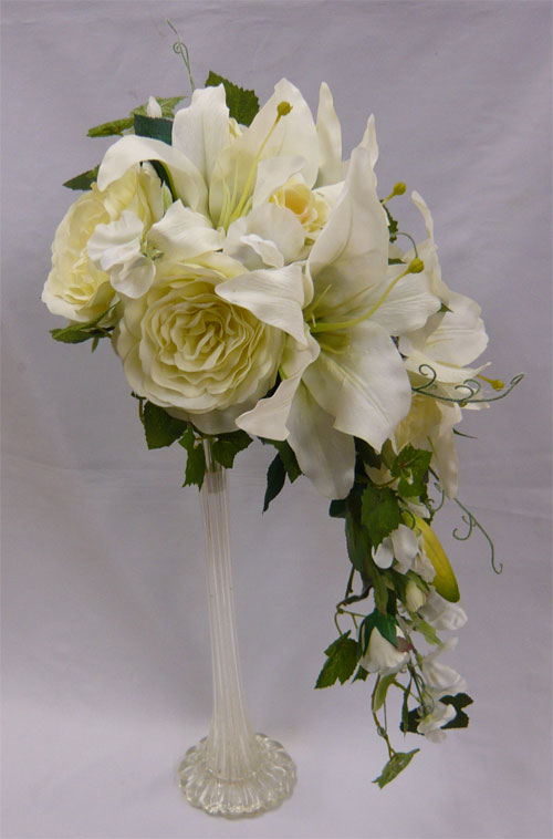 カサブランカ・バラ・スイートピーのキャスケードブーケ |