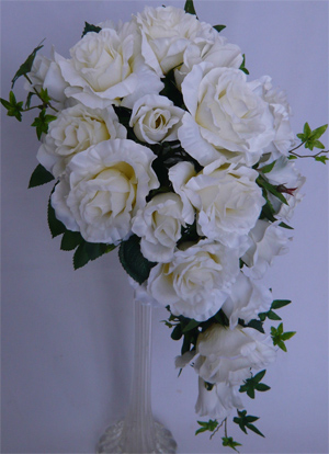 アートフラワー〔造花〕ブーケ/ホワイトローズ・キャスケードブーケpad